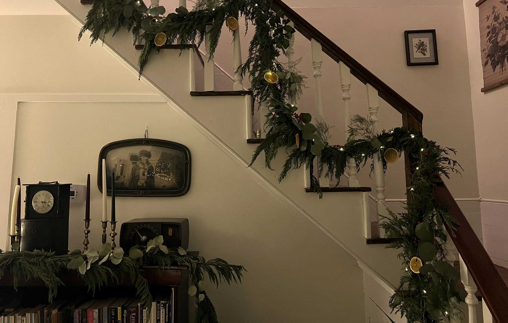 Christmas is a favorite. The images here, if viewed in reverse order, record a decade of seasonal decor exploration, and an evolution toward a more sustainable aesthetic showcasing natural resources and historic inspiration. When there was no budget for store-bought wreaths or garlands, I made my own, delighting in the creative process of arranging fresh greenery foraged from our property. Occasionally I’d build from scratch. Usually, I started with a purchased plain base (i.e. garland), already cut and wired together, with no adornments, and add layers of cedar, pine, fir, holly berries, eucalyptus, orange slices, and whatever else caught my eye. Adding fresh layers throughout the season was key to keeping arrangements lush and colorful all the way to the new year.