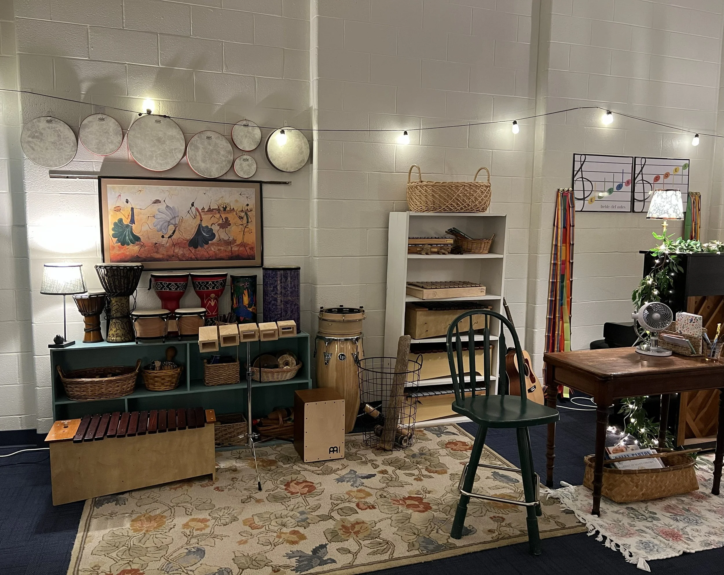 The last two of my twenty years as a music teacher were spent in the elementary classroom, where my greatest wish was to create a safe, magical place for children to experience music. I designed the space using my signature thrifted, vintage style, that was simultaneously engaging and sensory-sensitive.
