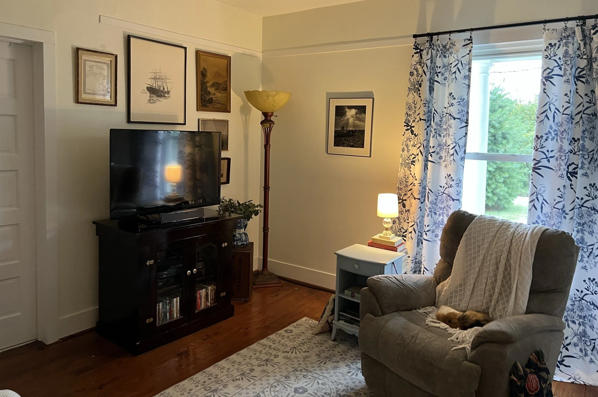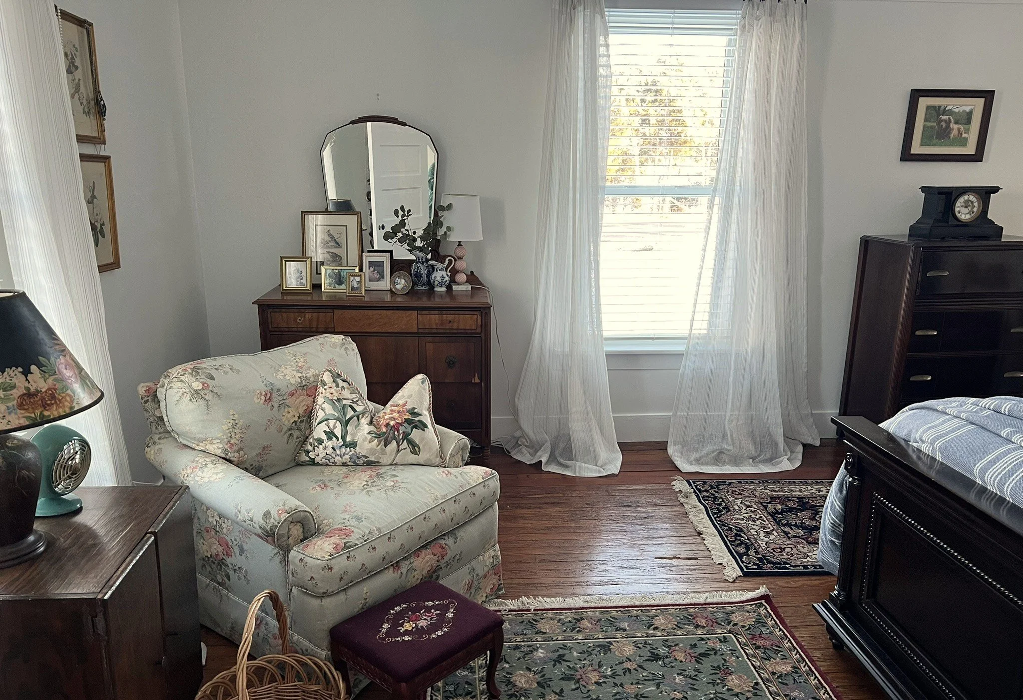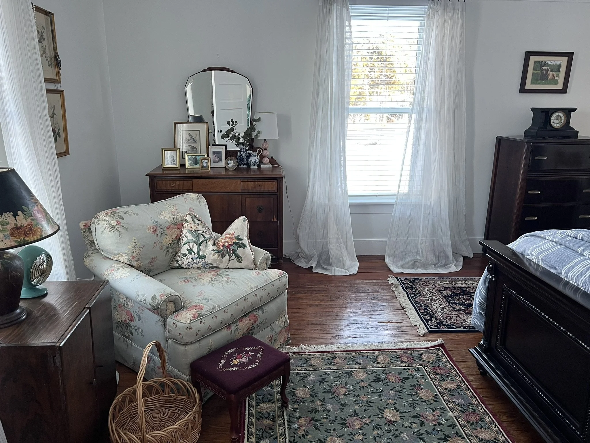 Around 2014, my social media algorithm started winding its way to cozy cottages adorned in equal parts simplicity, similar to early American farmhouses, and maximalism, reminiscent of Victorian English cottages. I began to notice many of the accounts belonged to “thrifters,” a new-to-me term Around the same time, my sister bought her first home, a rambling cottage with an “introvert porch,” that she proceeded to dress with riots of color, eccentricity, and joy. With those catalysts, an occasional hobby turned into a committed lifestyle of vintage thrifting, that naturally extended to designing interior spaces inspired by what came home with me.