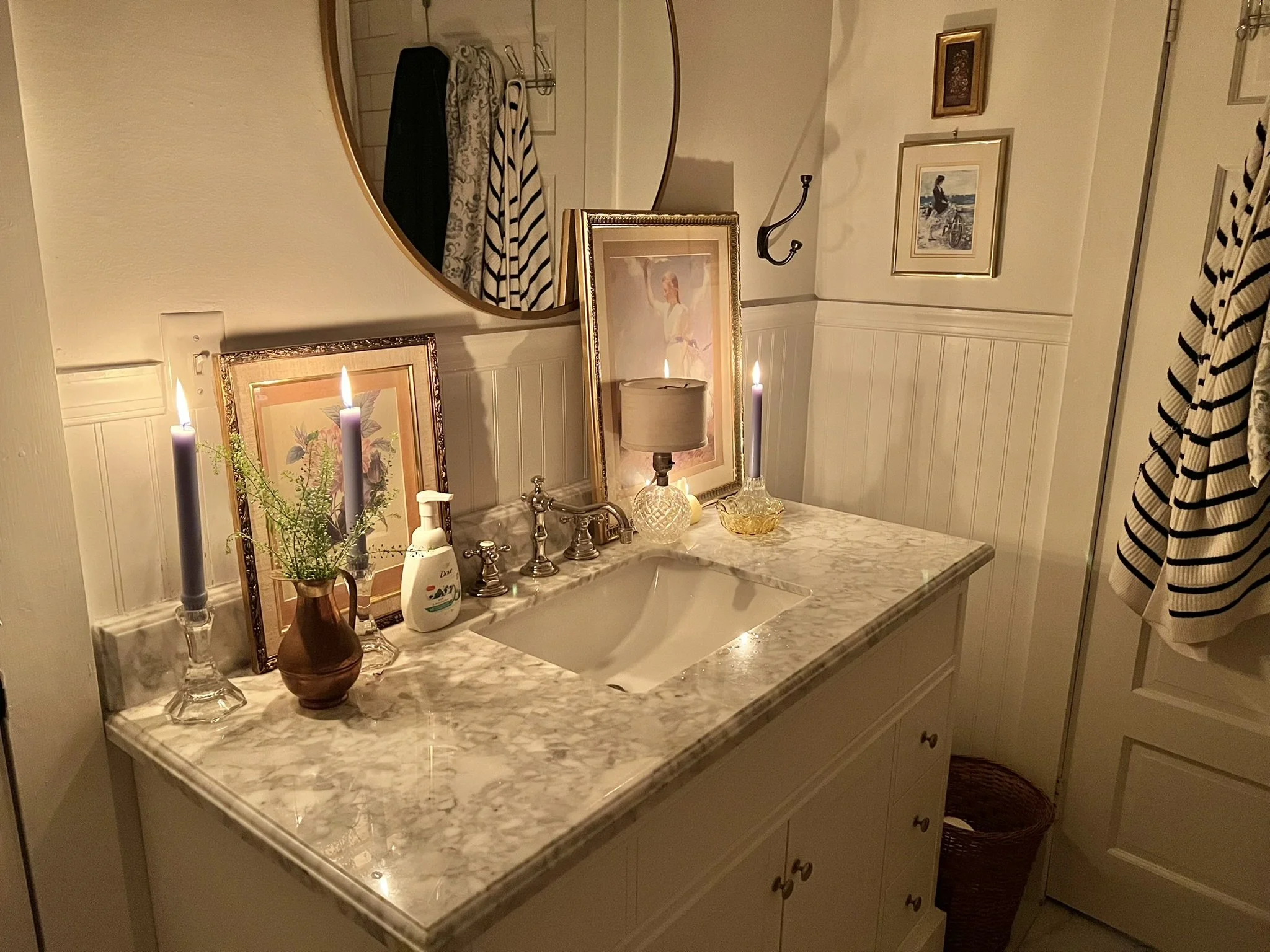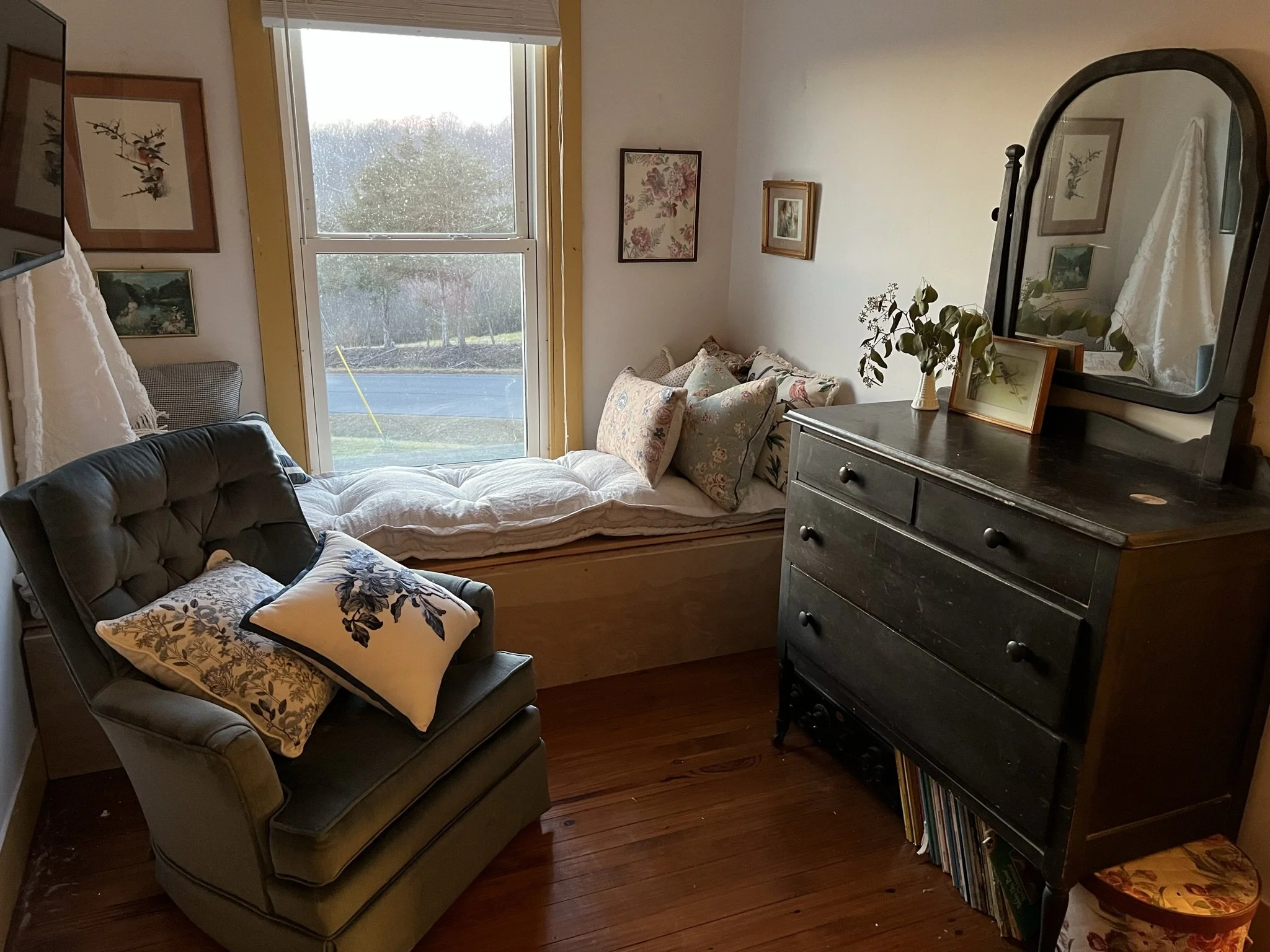 Cottage Hill Farm is where I began to experiment with scale, color, pattern, and texture, while unconventionally problem solving around design features that for whatever reasons couldn’t be altered. I came to understand mistakes as crucial to the creative process, and discovered the importance of patience and a long-view vision when making a home. I studied not only thrifters, but also designers whose work I could never afford, but from whom I learned about a wide range of interior design styles, the ways various individual elements cohabitate in a well-designed space, and options to consider when preserving a home’s history. I learned the importance of leading with heart rather than certainty or trend, when collecting treasures and designing spaces. I will always treasure my time at Cottage Hill.